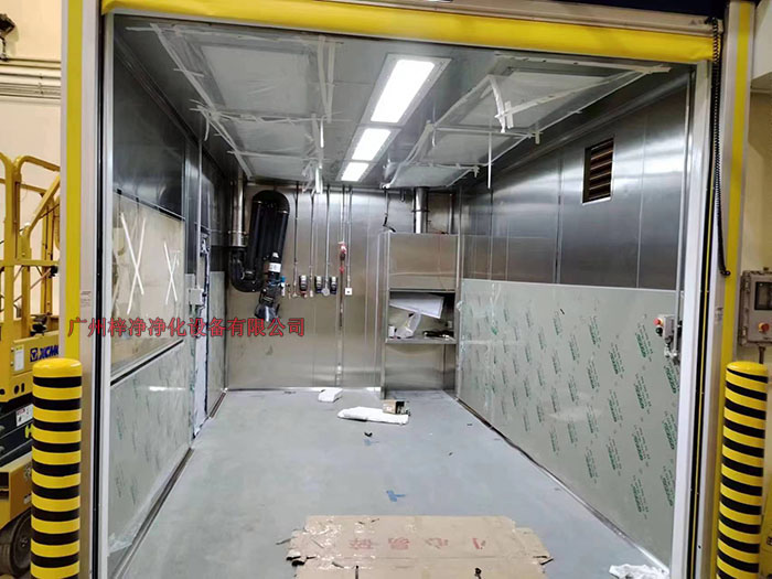 防爆潔凈棚四周圍可選防靜電垂簾(或鋼化玻璃),快速卷簾門等等;