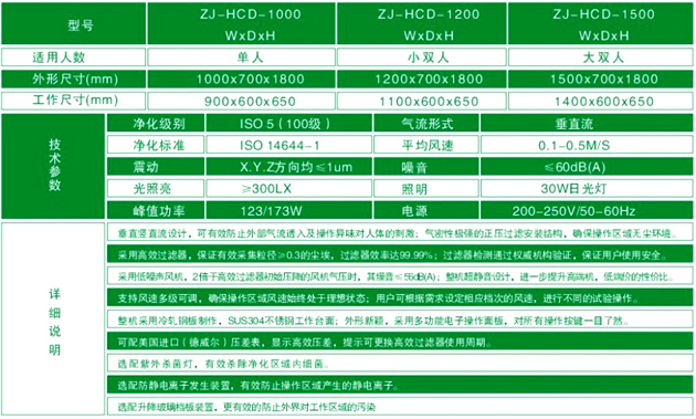 >>提供潔凈度等級為100級的操作環境,對于粒徑≥0.5μm的塵埃≤3.5顆/升;